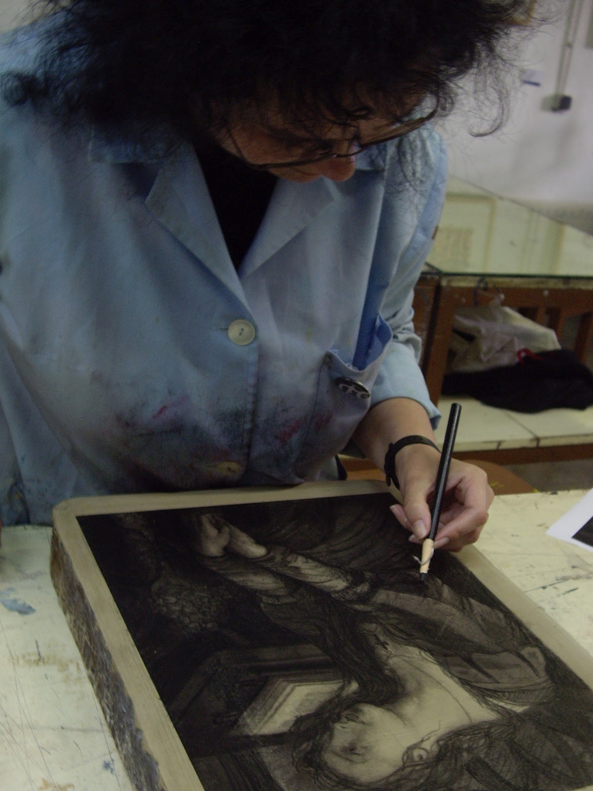 La litografía es un procedimiento de estampación planográfica pues las zonas dibujadas y las que no quedan en el mismo nivel sobre la matriz y va a ser el propio artista quien plasme la imagen sobre la piedra ya que no necesita saber grabar solo dibujar. Así desaparece la figura del estampista.